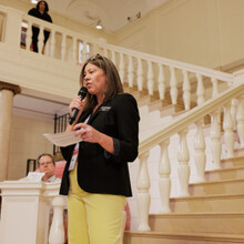 The evening also featured the Crystal Family New Hope Award Presentation Ceremony, honoring the 2024 winners, Mona Tolba and Samuel Dingba. Through the generous support of the Crystal Family, the New Hope Award was established in 2017 to recognize two New Americans for their contributions, accomplishments, and potential within the community. Each recipient of the award receives a $1,000 gift.